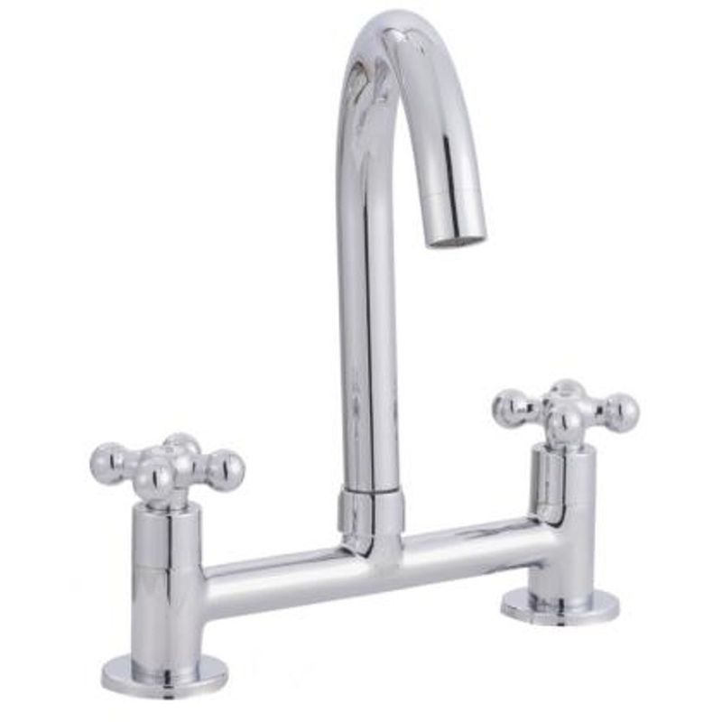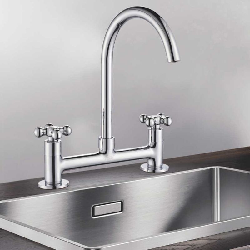 Combinación Lavaplatos Ravena Fas Cromo con accionamiento mecanico y cromado decorativo.